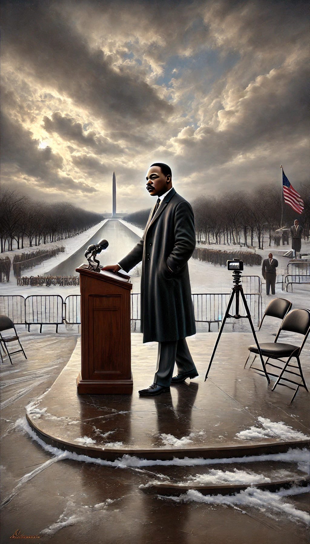 Reverend Martin King's dress shoes crunched against salt-crusted pavement as he approached the presidential podium. His hands trembled – from the cold, he told himself – as he mounted his phone on a small tripod. The device's screen reflected his face: clean-shaven, sixty-three years old, with patches of gray at his temples that his daughter teased made him look distinguished. Twenty years of sermons in rural Georgia hadn't prepared him for this moment.