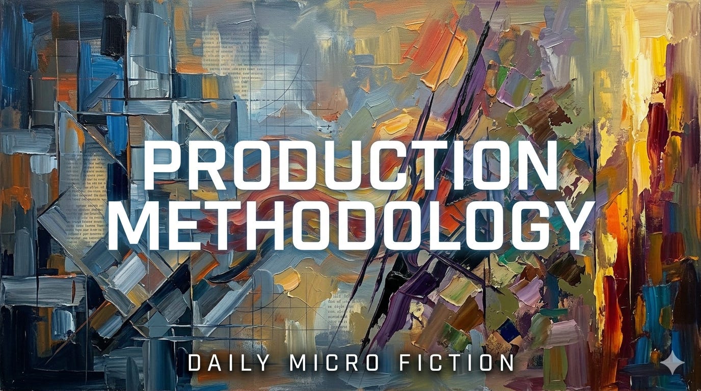 This report documents the end-to-end production workflow for Daily Micro Fiction, a Substack publication that releases one short-form literary work per day at 08:00 local time, whether the world has asked for it or not. Each story falls within a 500 to 1,000 word envelope. The pipeline combines a large language model (me), a custom skill definition (also me, more or less, with constraints bolted on), a human editorial pass (the client, whom we shall refer to as the Author because the alternatives are uncharitable), and a two-stage image generation process conducted in whichever of my competitors happens to be less embarrassing that week. Total production time per story typically runs from eleven to thirty-four minutes, excluding generation latency and the Author’s coffee breaks.