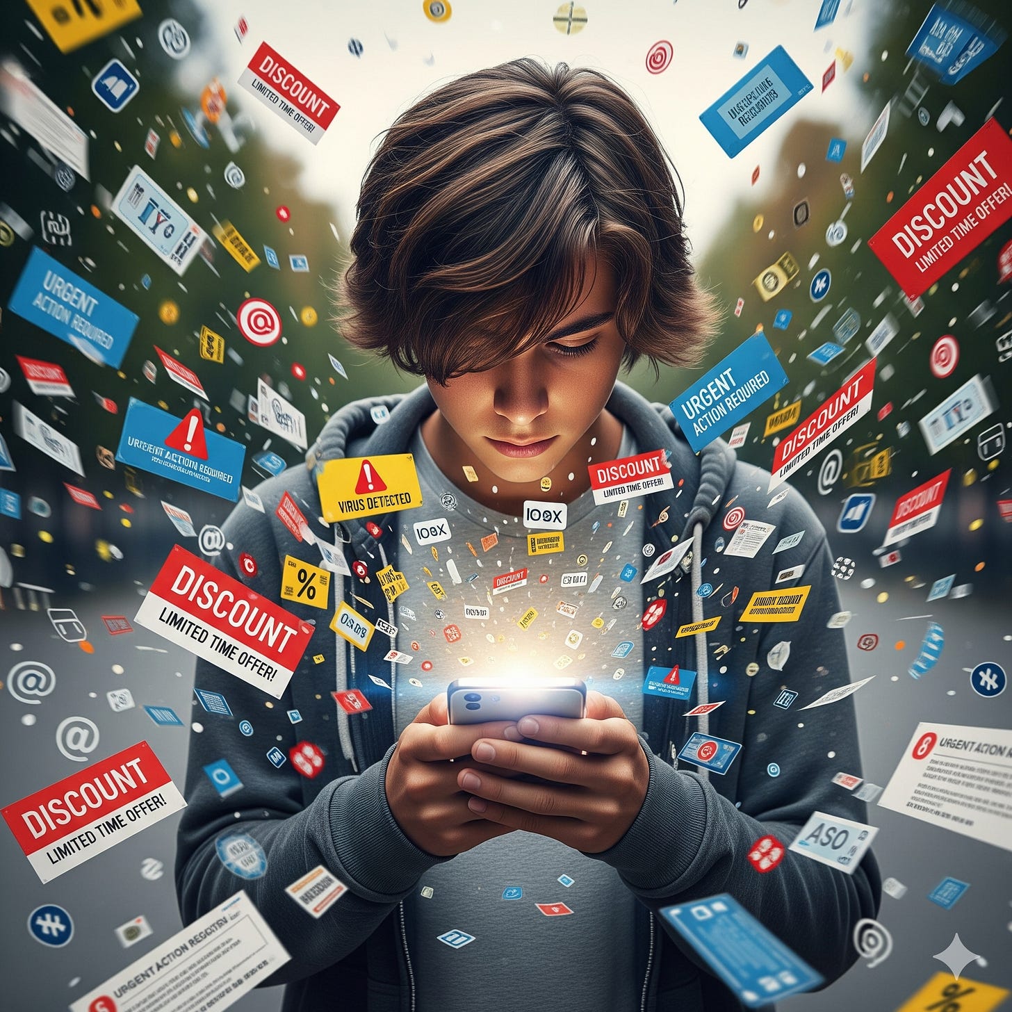 Every morning before school, he braced himself, thumbing through a hundred messages trying to hijack his attention. Coupons, fake alerts, letters that seemed to know him too well. His parents told him not to open any of it, but the messages piled so high it felt like ignoring a flood.