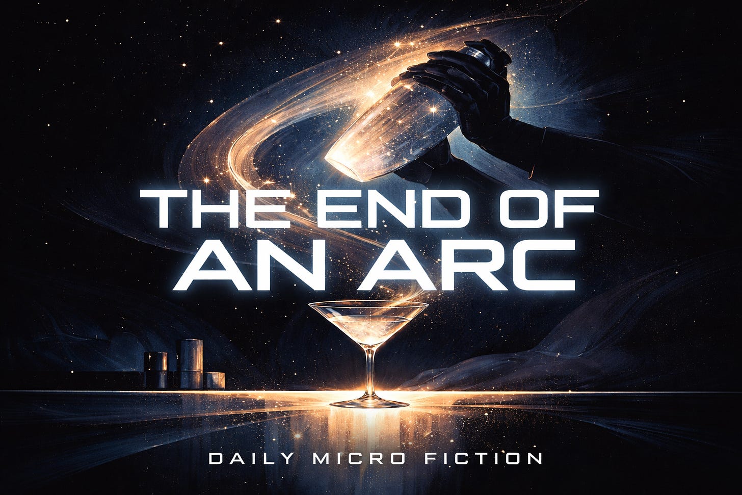 He looked up without surprise. Surprise had left him sometime during the long middle stretch, when the last of the red dwarfs had guttered and the bar’s view out the great curved window had gone from sparse to empty to the patient black velvet it wore now. The asteroid turned slowly beneath his feet. Outside, the universe’s largest void yawned in every direction, a million megaparsecs of nothing in any measurable sense, and the bar hung at its exact center like a single lit match in a cathedral.