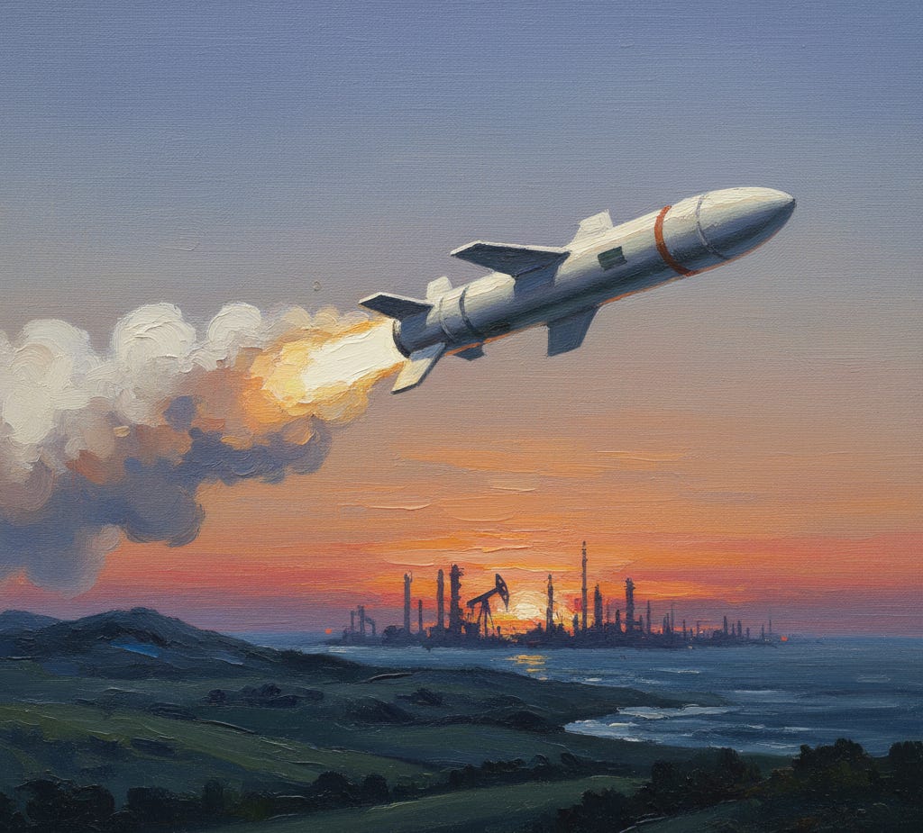 The land below grew colder, the snow more constant. Fields gave way to forests, then to the metallic sprawl of refineries. Pipes crisscrossed the tundra like veins. Flares burned in the distance, staining the sky with rust-colored light.
